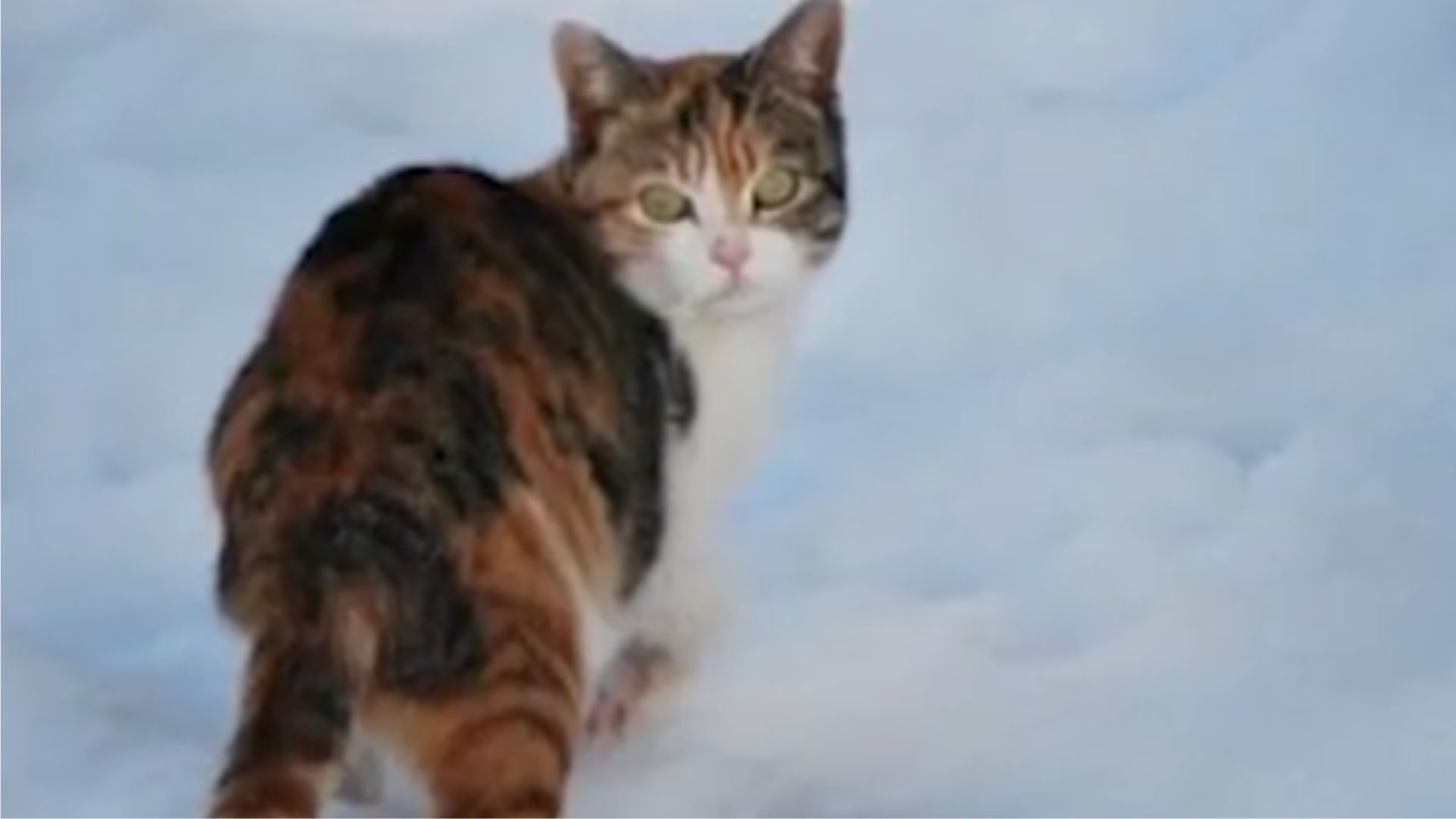 Upon seeing her, he was horrified: The cat was freezing, barely breathing, and her tail was stuck to the icy ground.