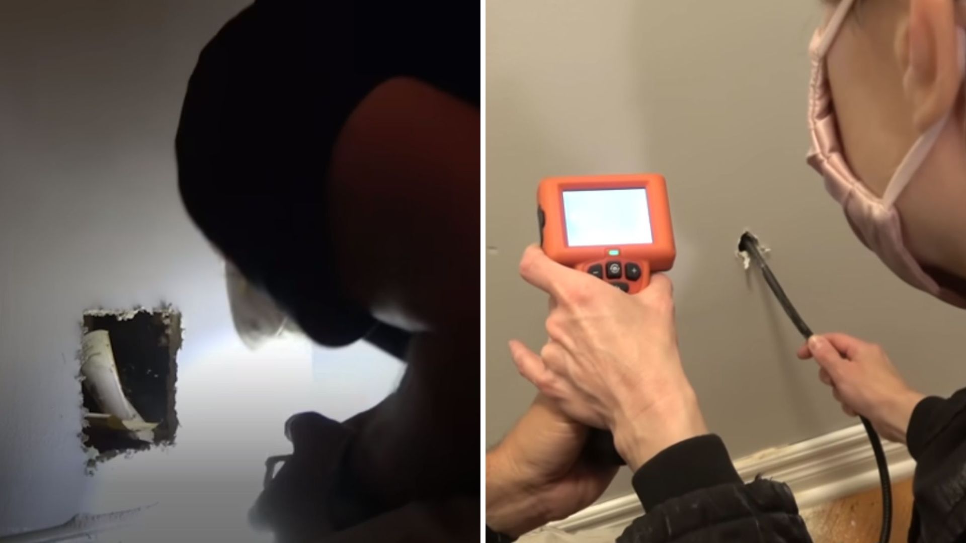 Using a special camera, the rescue team peered inside the wall to see what might be hiding there.