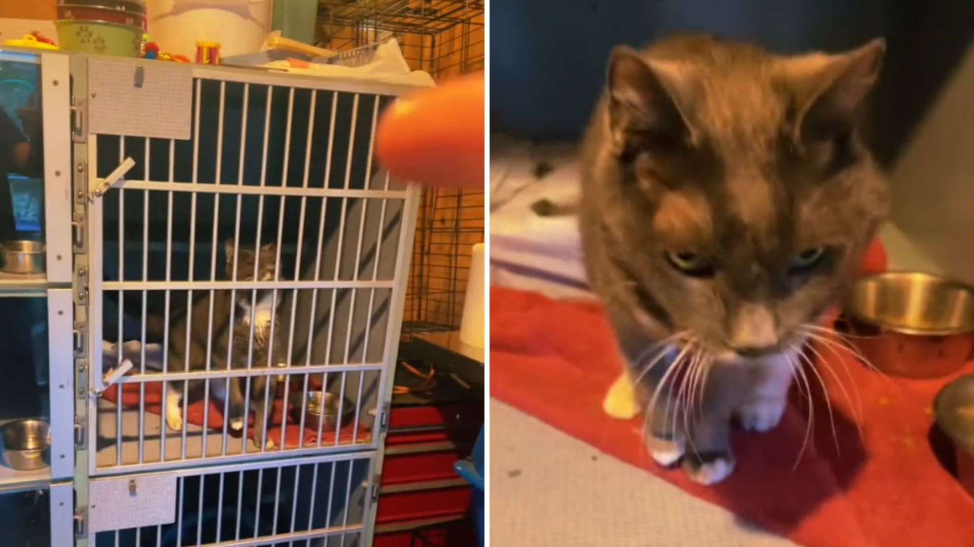 The internet collectively melted as they watched Alicia open the cage and the cat calmly look up at her, as if saying, “Hi, everything’s good, thanks. Oh, that? Well, that’s just my baby.”