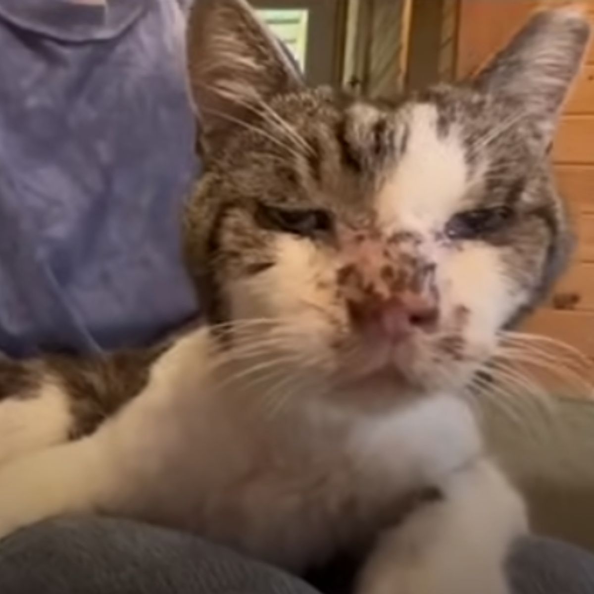 Thankfully, Caleb’s story didn’t end there. He was taken in by Peaceful Mountain Cat Sanctuary, a safe haven where cats like him could finally find peace.