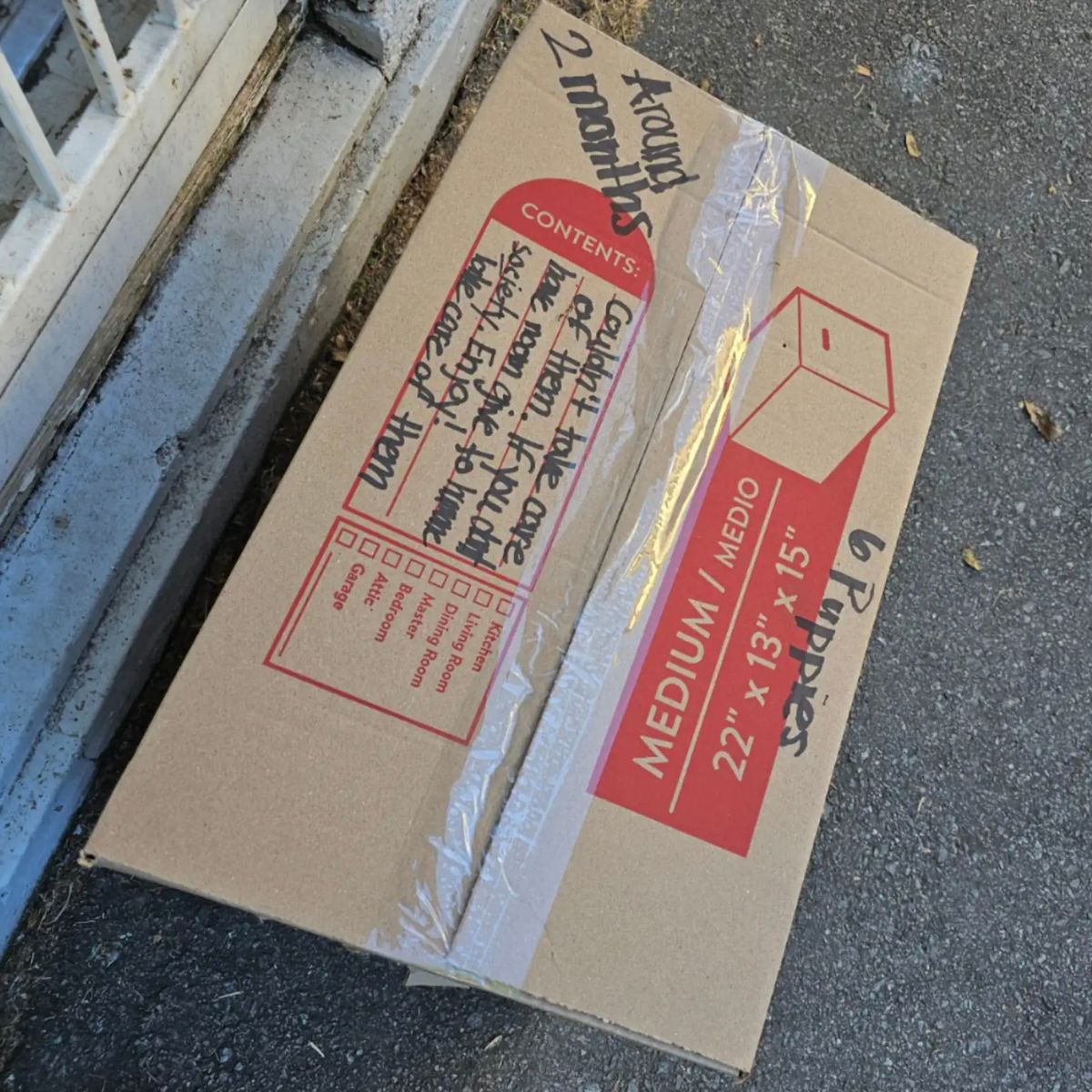 What she didn’t expect was to find a plain cardboard box sitting outside the shelter door with a message scrawled across the top that made her stomach drop: