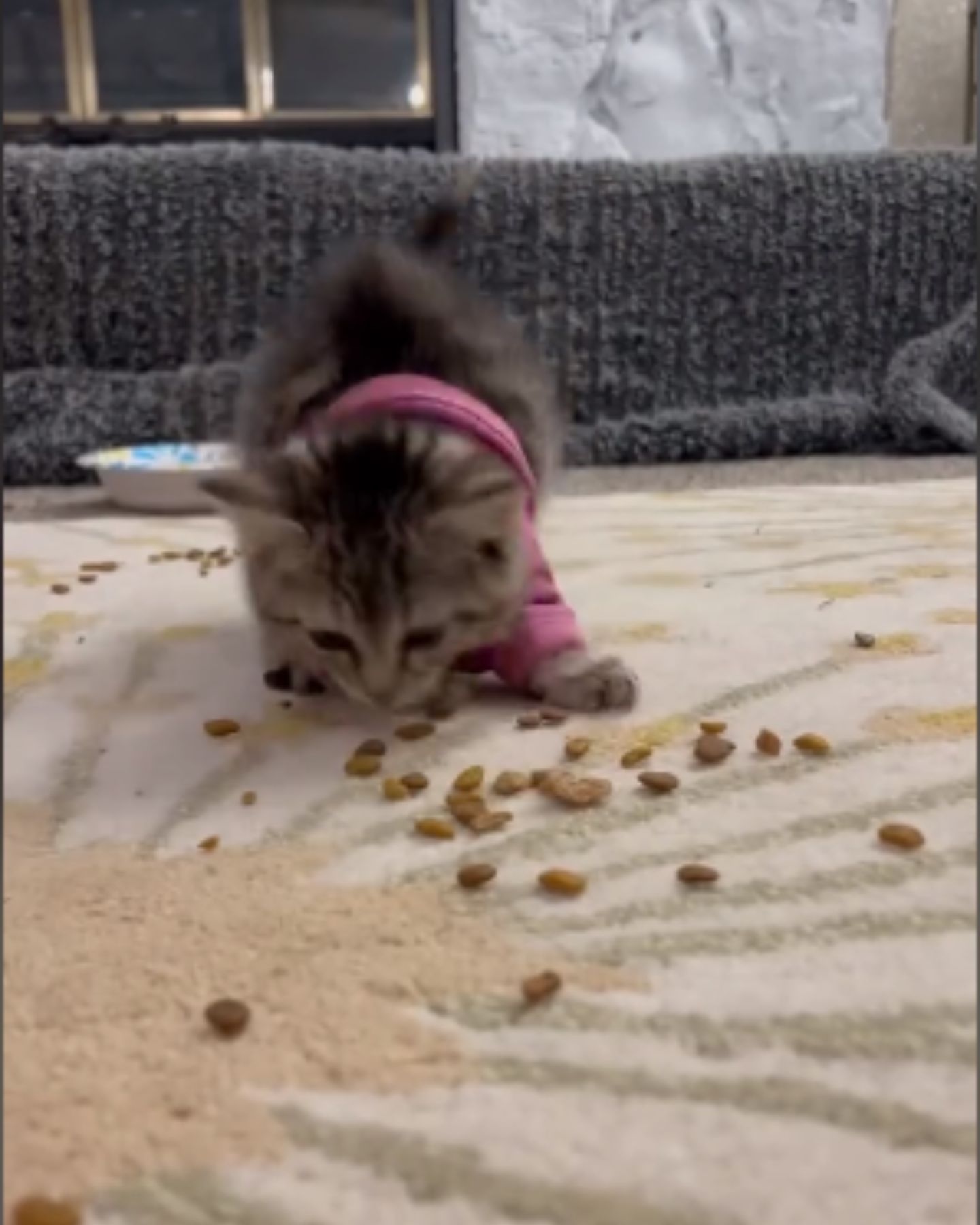 One evening, while scrolling through Instagram, I stumbled upon a video of a special needs kitty eating her dinner with pure determination.