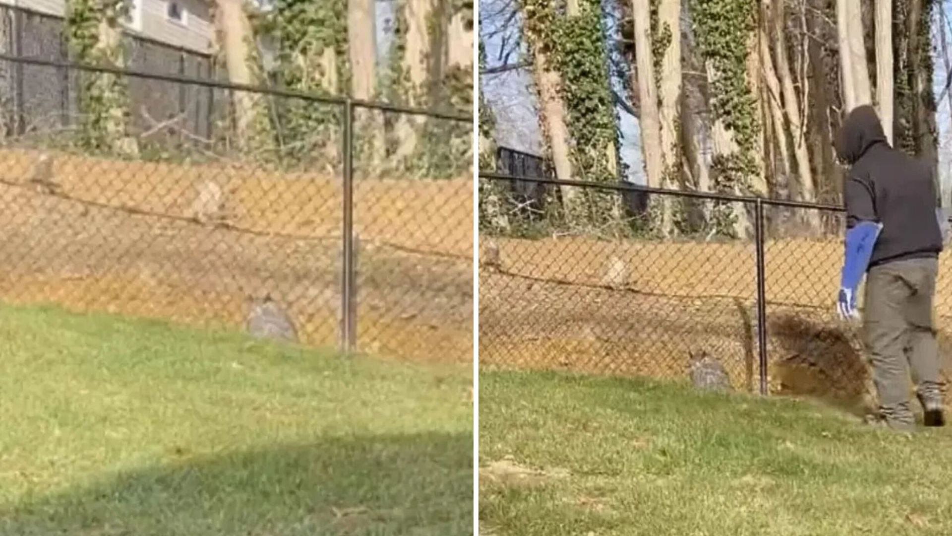 A Long Island homeowner had just stepped outside to let his dogs stretch their legs when something unusual near the fence line made him pause.