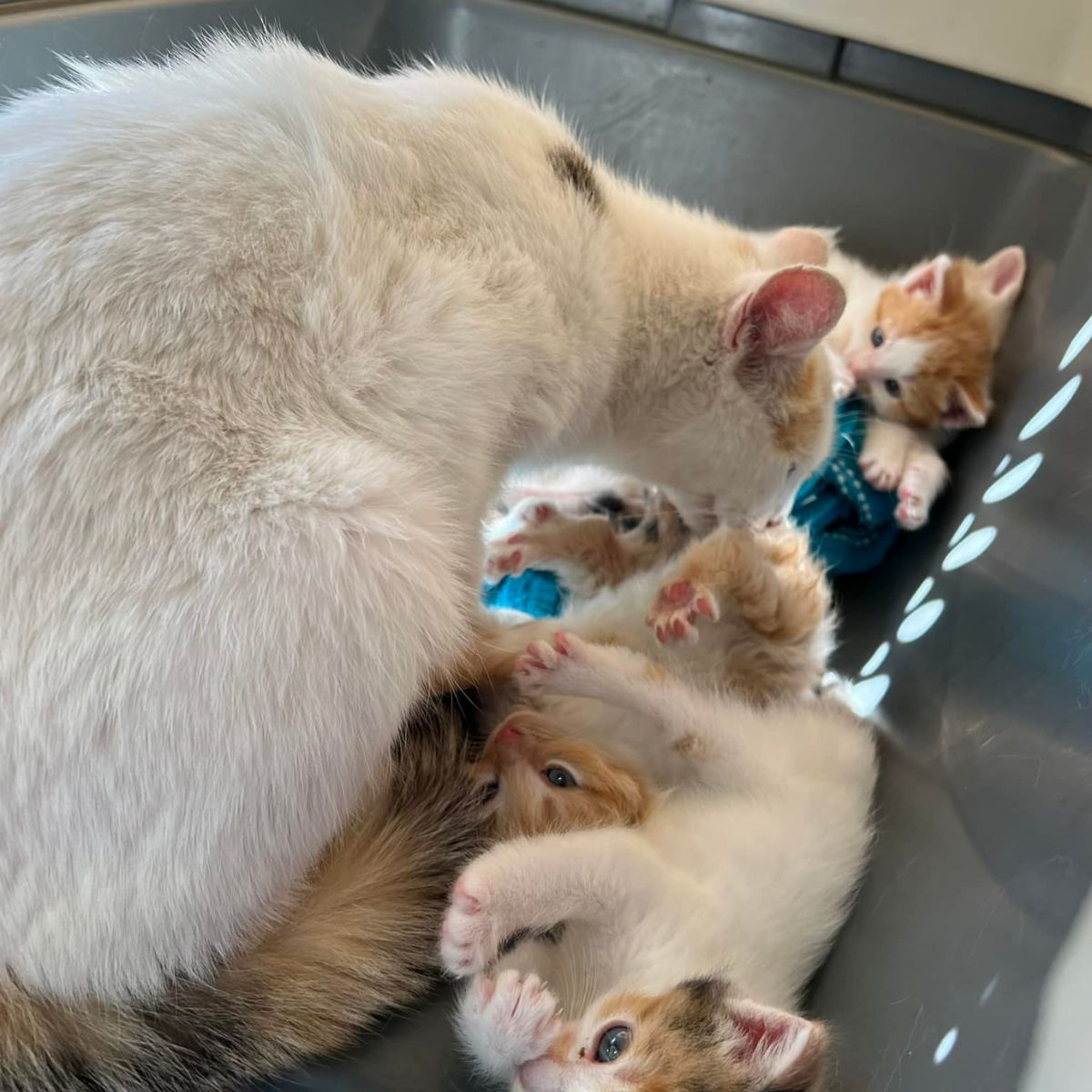 But there was a problem. The younger mother wasn’t nursing her kittens, which left the fragile babies at risk.