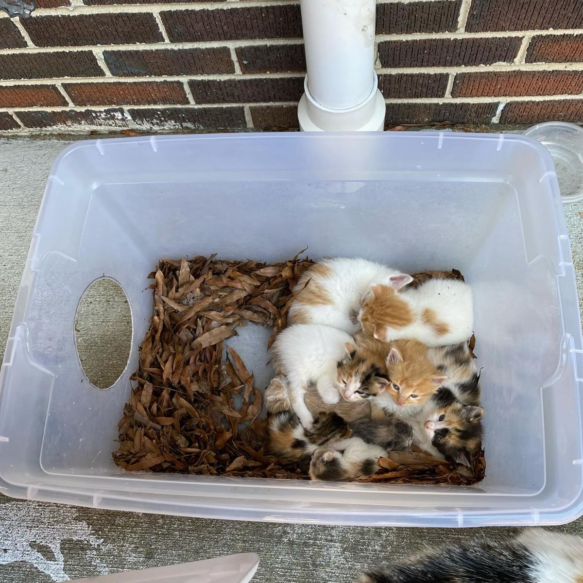 It was a large plastic storage tub with several more kittens of seemingly different ages, all huddled together inside.