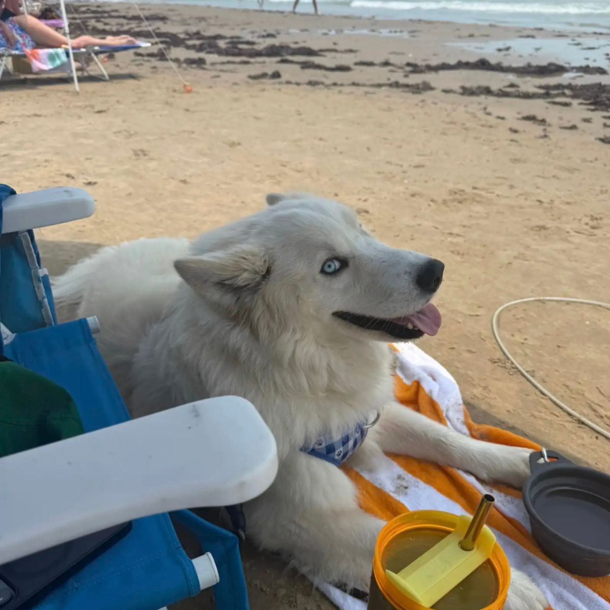 Apollo officially became an indoor dog, leaving his hard past behind. Today, he spends his days soaking up belly rubs, racing around the beach, and cuddling up with his favorite humans.