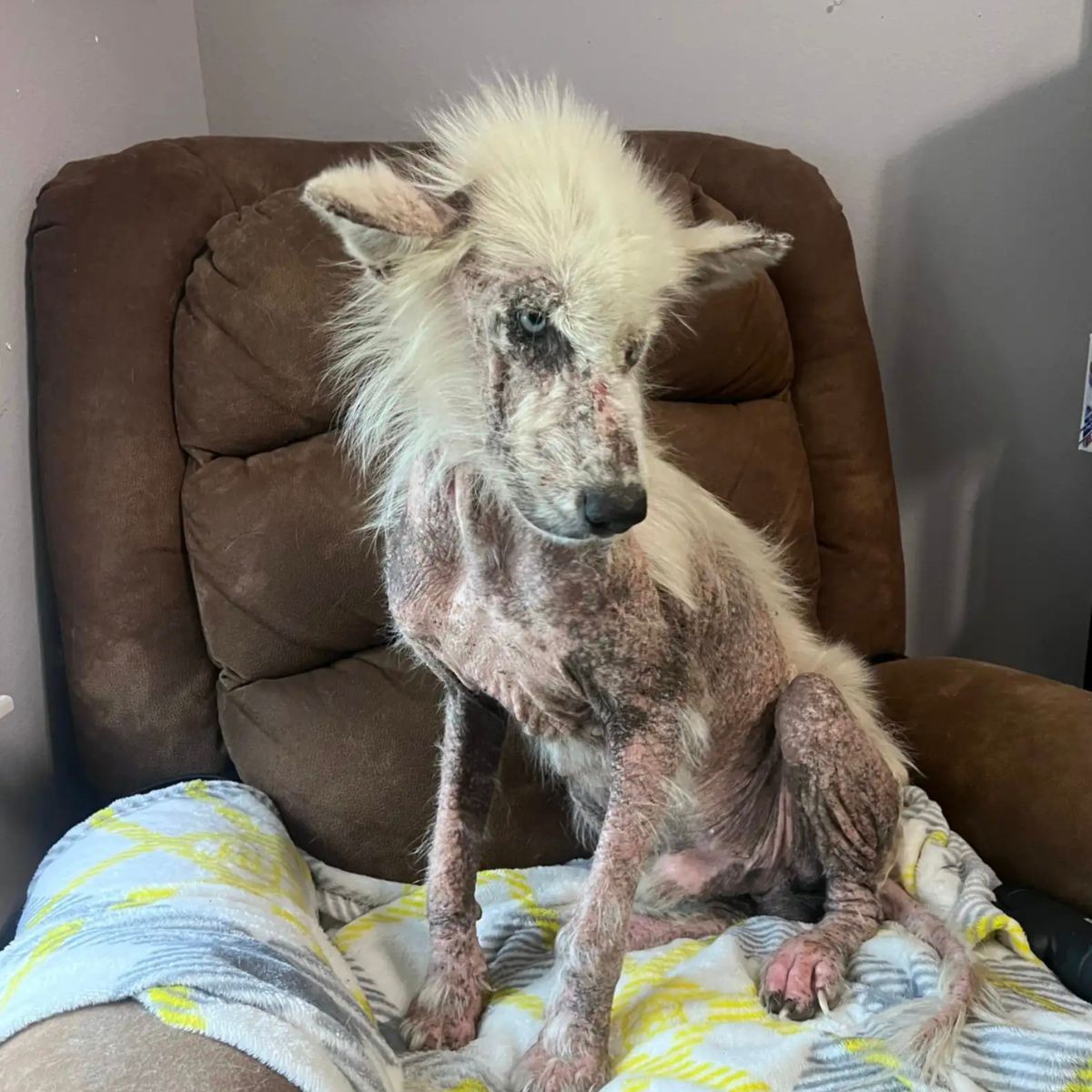 The once-hairless, timid dog had become almost unrecognizable. His fur was thick and healthy again, and his eyes, once full of fear, now sparkled with life.