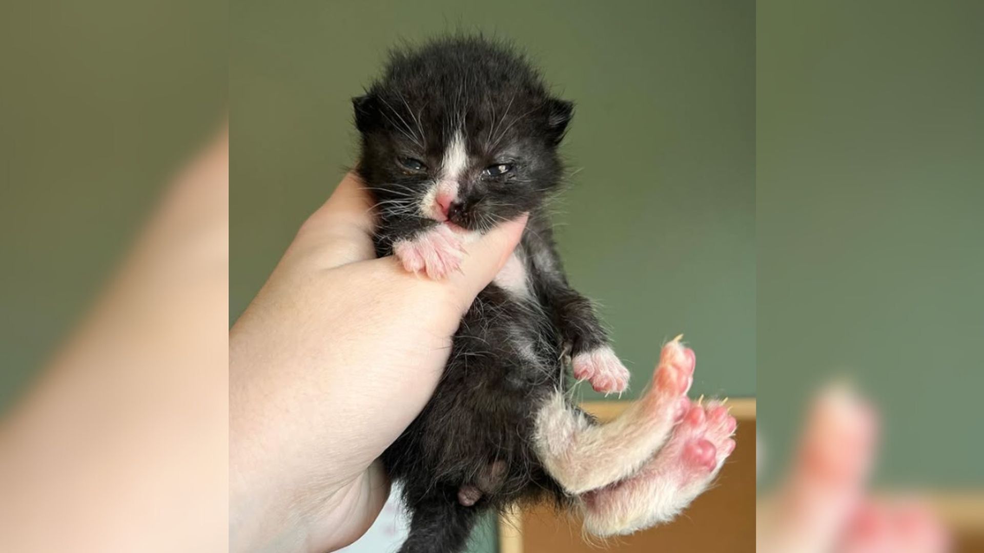 Despite being around 2 weeks old, tiny Copper looked as though he was a newborn kitten. Mantes said: