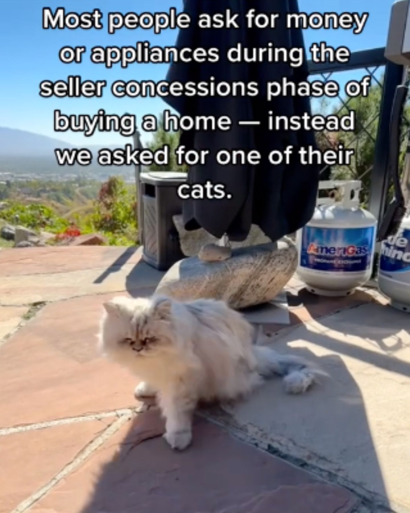 “On the seller’s counter offer to ours, he dropped the price down. But he said, ‘I’ll include the cat and the air purifiers.’”
