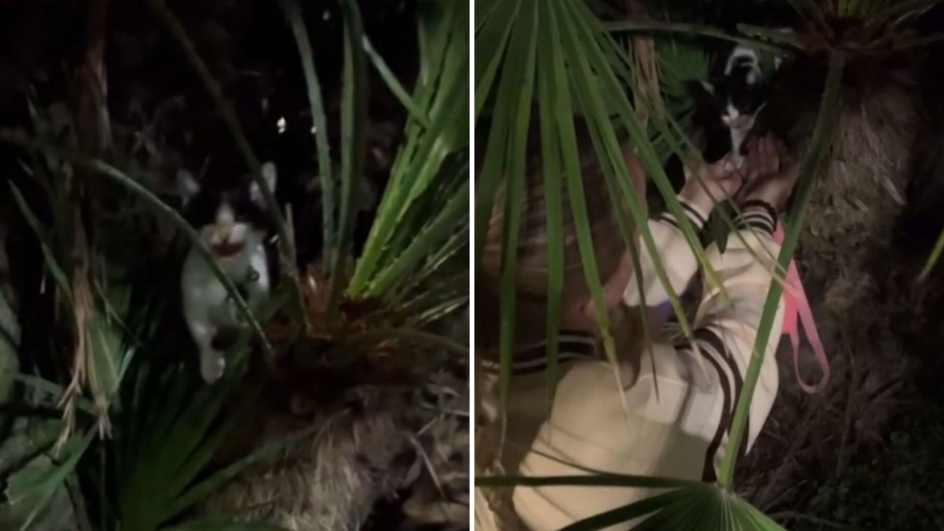 That’s when they spotted a tiny kitten stuck far off the ground, with no way down and no one else around to notice she needed help.