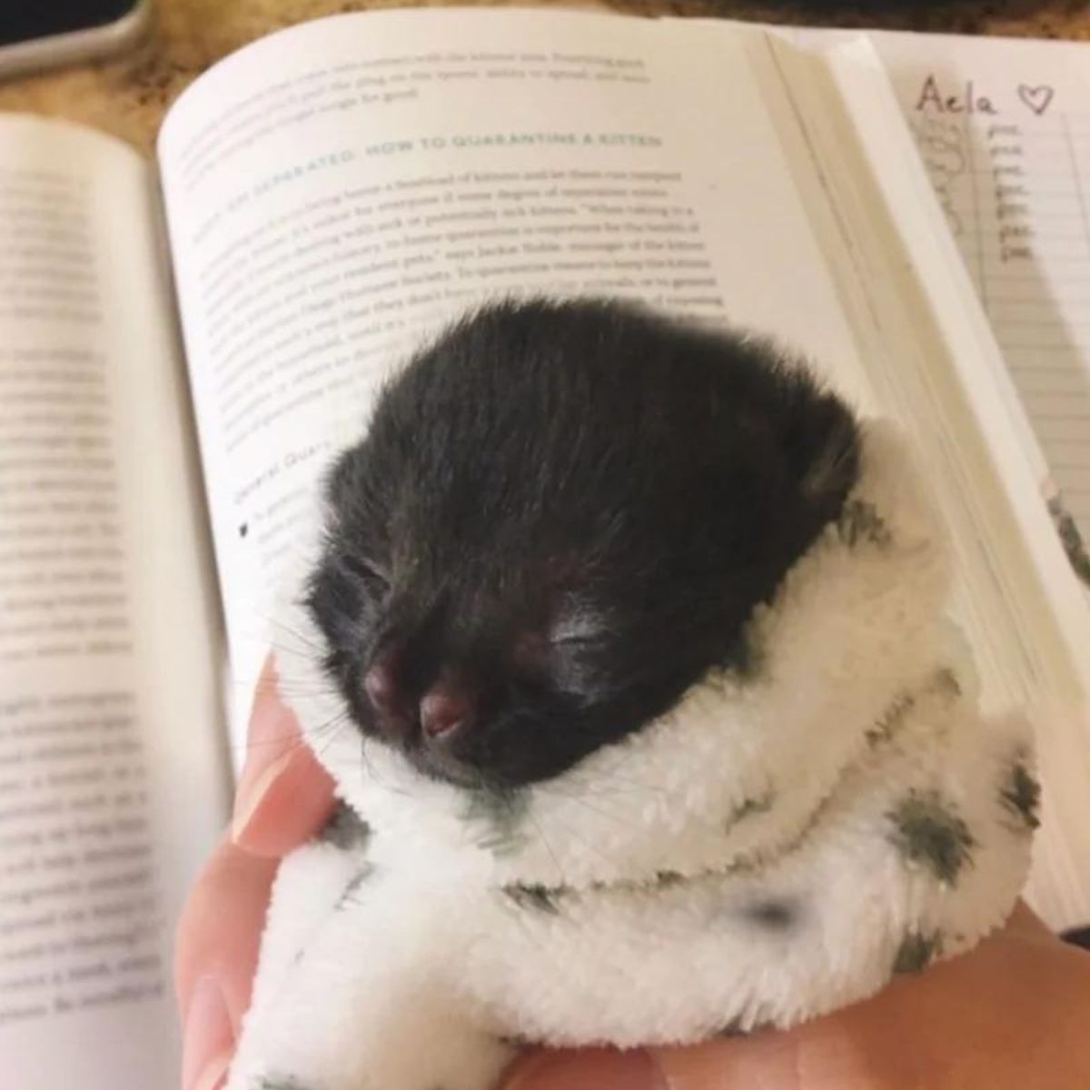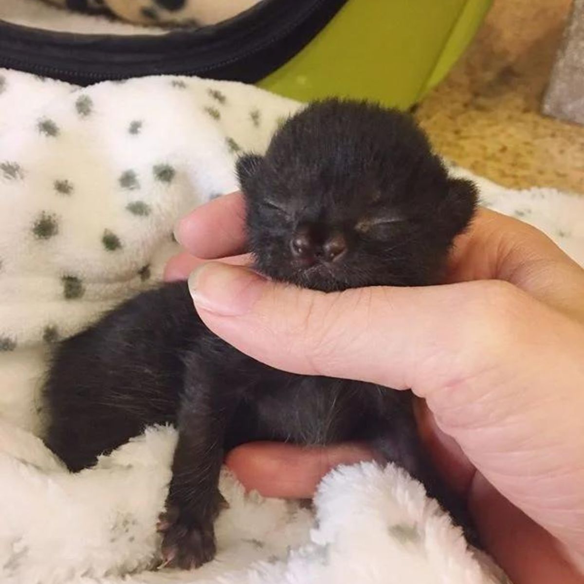 “Someone had found a solo kitten. It still had closed eyes and was meowing a lot, and obviously hungry. Something told me that I needed to go get it immediately. I got in touch with the finder, grabbed a mask and gloves, and hopped in my car.”