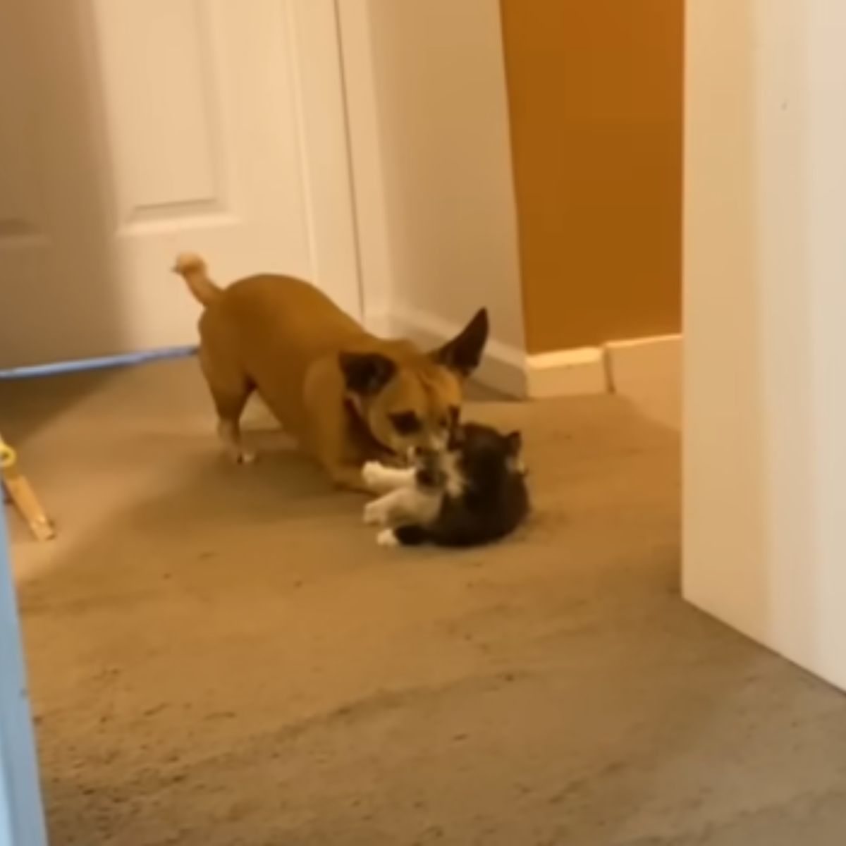 “She’s adopted her as one of her own. They will play together, they’ll get zoomies together, they’ll, like, share toys together.”