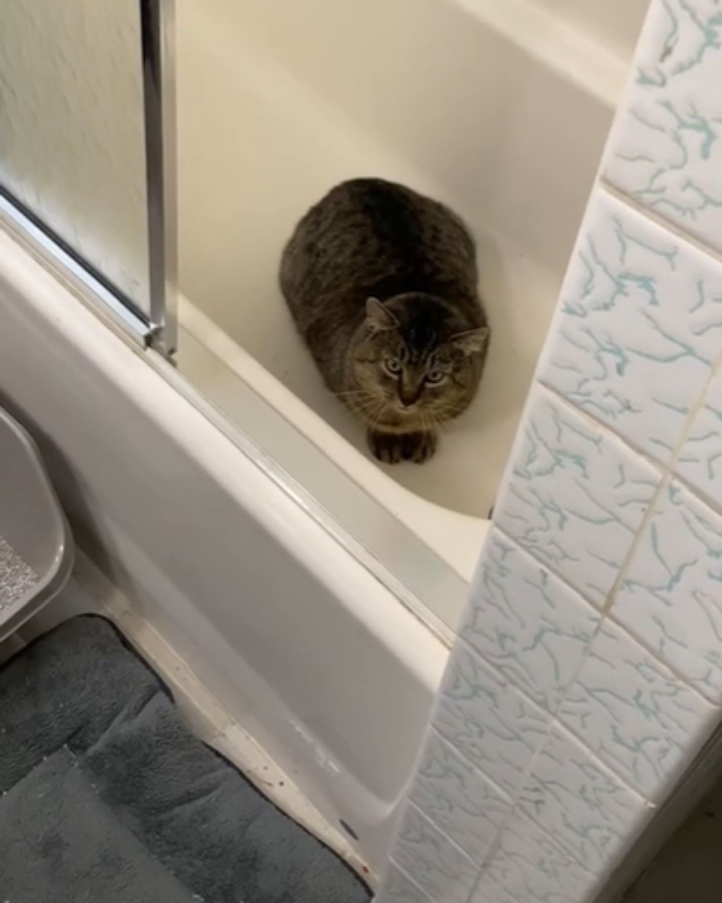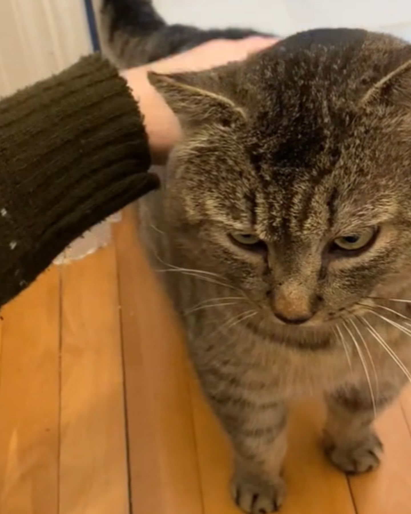 Just like that, the street cat was in. And oh, he was not pleased. He let her know exactly how he felt about being cornered.