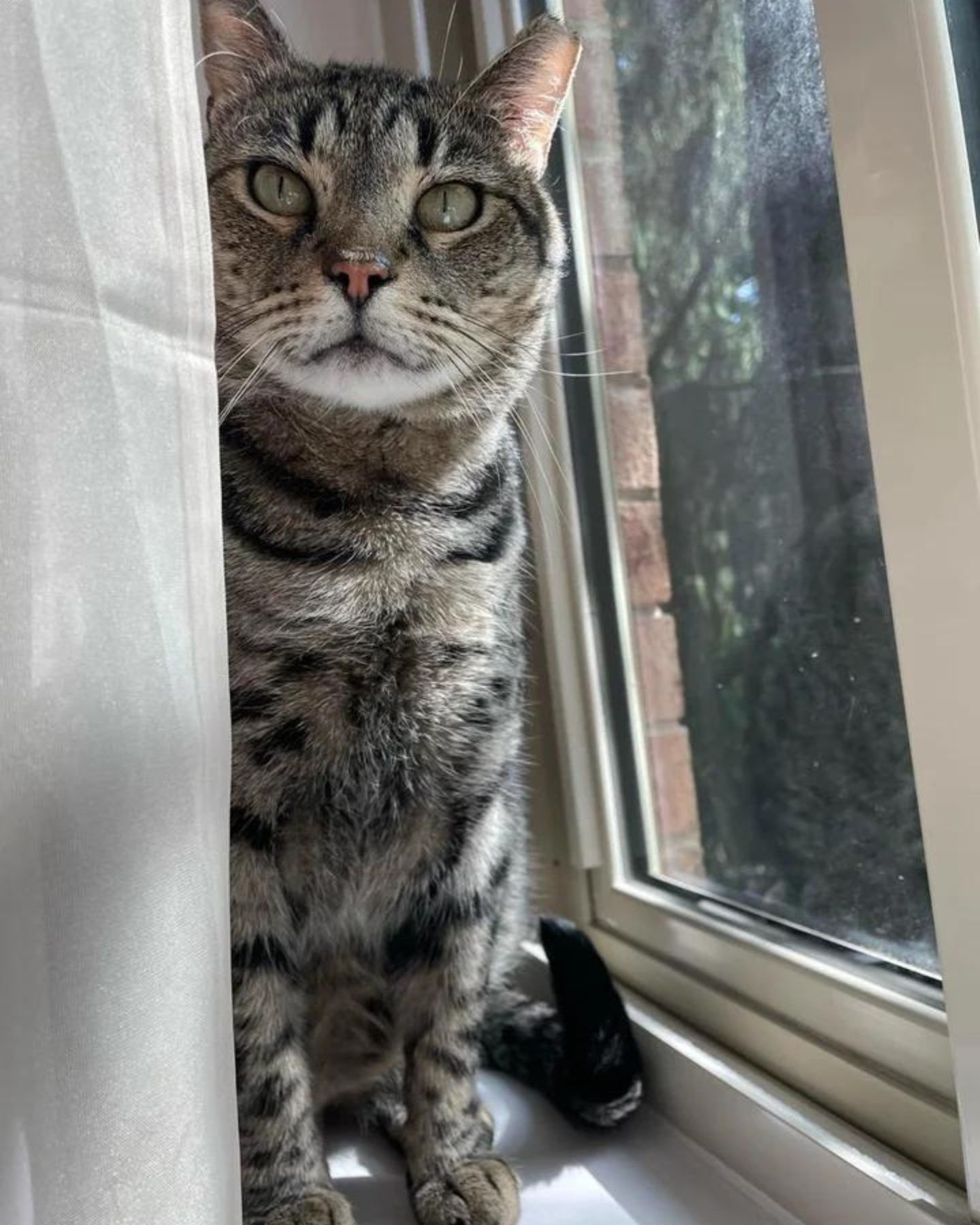 When he’s not glued to his humans, you can usually find him sitting at the window, lost in the world of bird-watching.