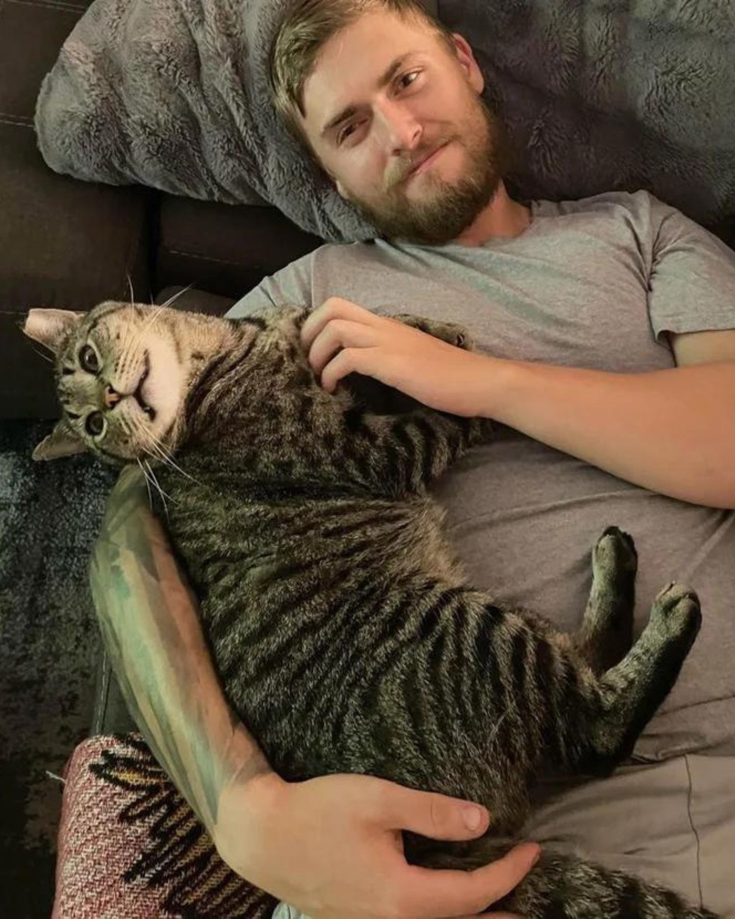 And like every cat who finally gets to relax in safety, he’s become a pro at cuddling.