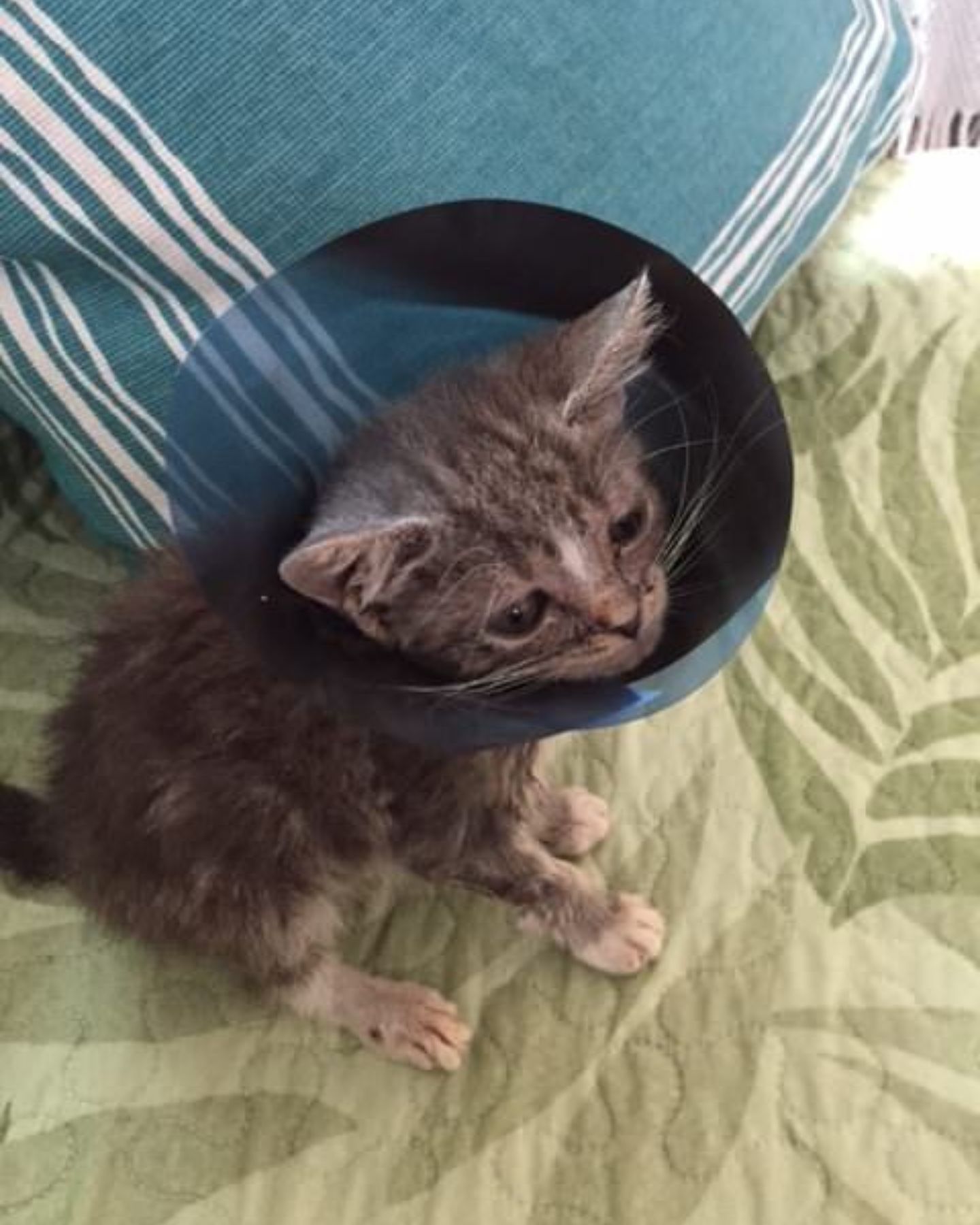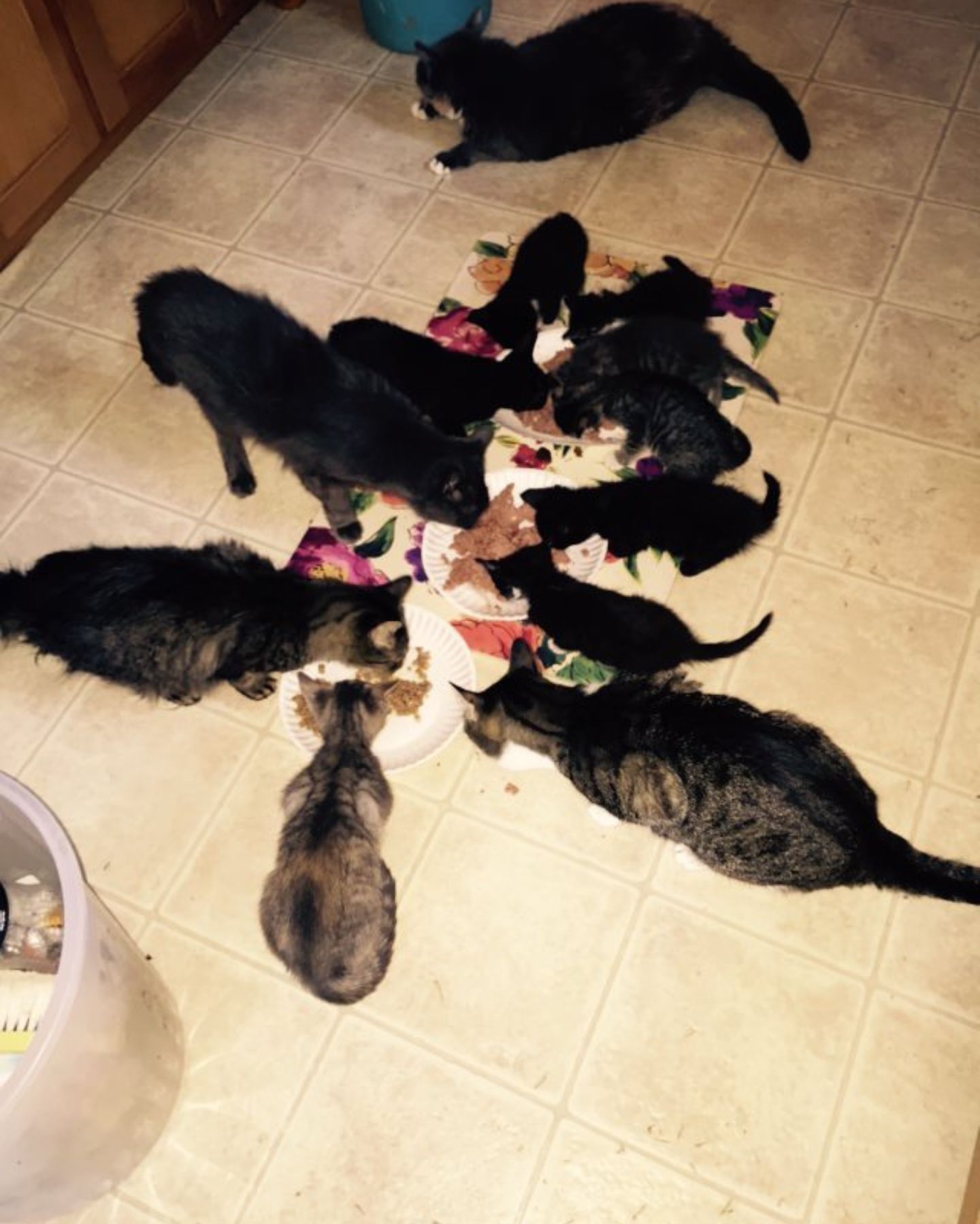 She took the kittens home and became their surrogate mother. They needed feeding every few hours, so she improvised, using a clean nasal spray bottle as a baby bottle.