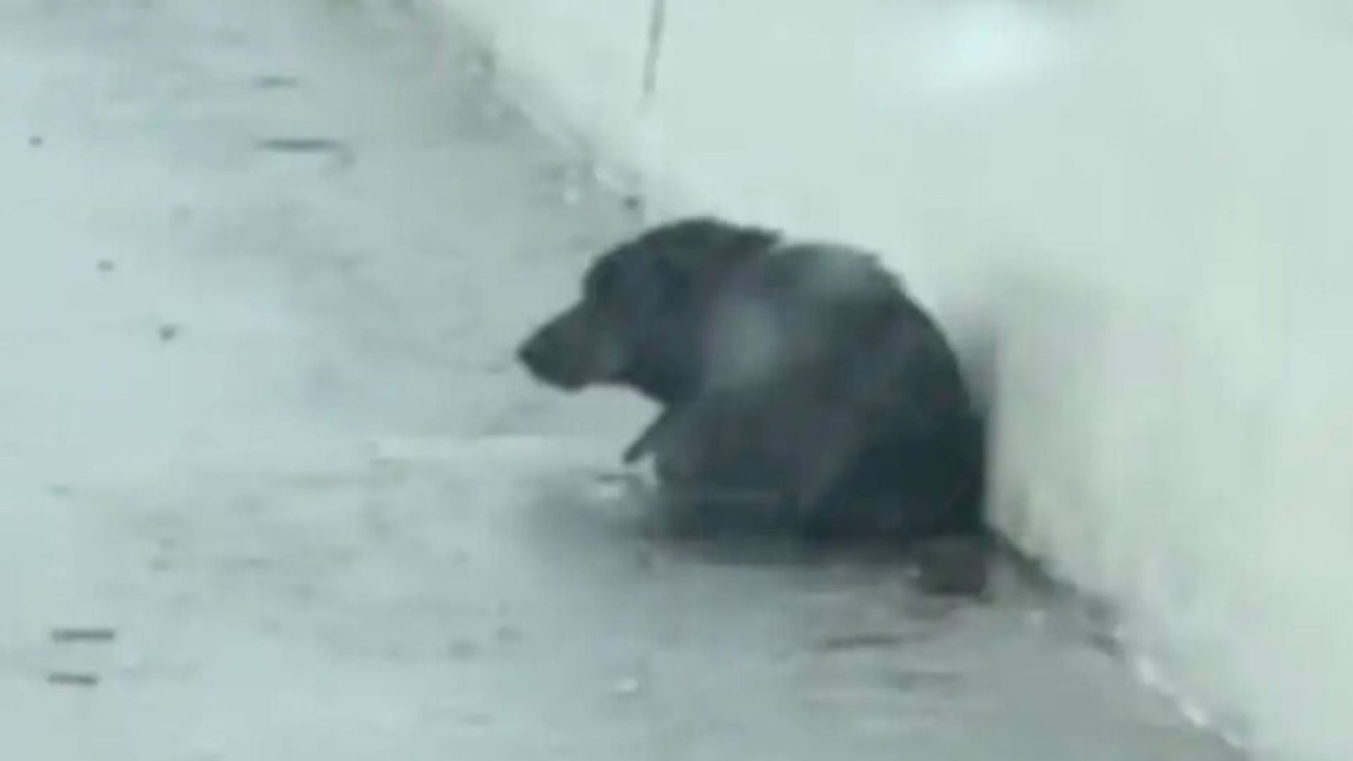 It was a dog, soaked to the bone, trembling in the downpour as cars sped by.